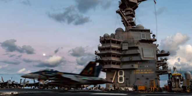 ويأتي تحرك حاملة الطائرات الأكثر تطوراً في البحرية الأمريكية في وقت لا تزال فيه العمليات العسكرية ضد إيران جارية على قدم وساق، لا سيما مع سعي الولايات المتحدة لإيجاد سبل للحد من التهديد الإيراني للملاحة في مضيق هرمز.