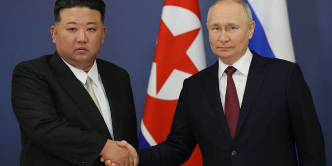 وجاءت تصريحات المتحدث بعد ساعات من استقبال الرئيس الروسي، فلاديمير بوتين، زعيم كوريا الشمالية، كيم جونغ أون، الأربعاء، حيث تصافح القائدان أمام ميناء فستوتشني الفضائي، وعقدا محادثات في مدينة فلاديفوستوك بأقصى شرق روسيا.
