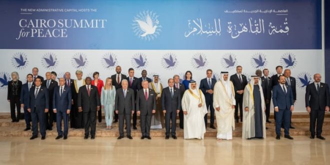 وأصدرت الرئاسة المصرية بيانا، قالت فيها إن مصر كانت تتطلع “إلى أن يطلق المشاركون نداء عالميا للسلام يتوافقون فيه على أهمية إعادة تقييم نمط التعامل الدولى مع القضية الفلسطينية على مدار العقود الماضية”.