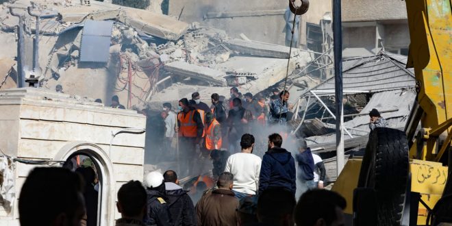 وأضاف التلفزيون الرسمي أن فرق الدفاع المدني السورية تبحث عن أشخاص تعتقد أنهم محاصرون تحت أنقاض المبنى المدمر.