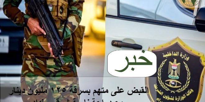 أعلنت مديرية مكافحة إجرام، اليوم الثلاثاء، عن إلقاء القبض على متهم بسرقة ١٢٥ مليون دينار مع دراجة نارية من داخل دار شرقي بغداد .