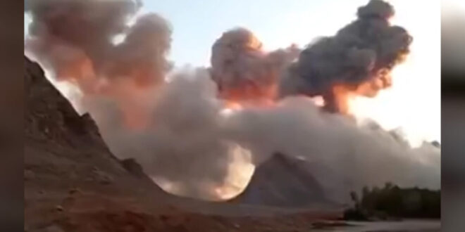 أظهر مقطع فيديو، تم تحديد موقعه الجغرافي بواسطة شبكة، انفجارات هائلة ودخاناً كثيفاً يتصاعد قرب مدينة بهارستان الإيرانية، على بُعد حوالي 21 كيلومتراً جنوب مدينة أصفهان، الأربعاء.