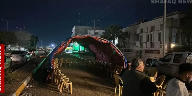 قضاء خانقين نصبوا خيمة اعتصام أمام دائرة توزيع الكهرباء، رفضاً لمشروع خصخصة