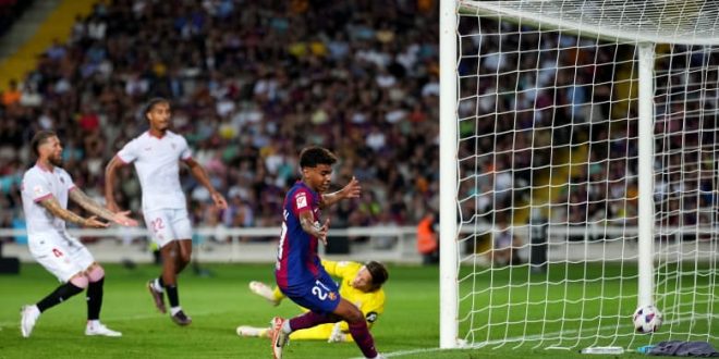 تغريدة من نادي برشلونة الإسباني عن هدف سيرخيو راموس العكسي