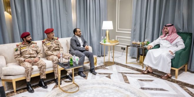 وذكر الأمير خالد بن سلمان، عبر حسابه على منصة “إكس”: “التقيت وفد صنعاء الذي زار الرياض لاستكمال الجهود الرامية لدعم مسار السلام في اليمن، أكدت خلال لقائي بالوفد وقوف المملكة مع اليمن وشعبه الشقيق، وحرصها على تشجيع الأطراف اليمنية للجلوس على طاولة الحوار للتوصل إلى حل سياسي شامل ودائم في اليمن تحت إشراف الأمم المتحدة”.