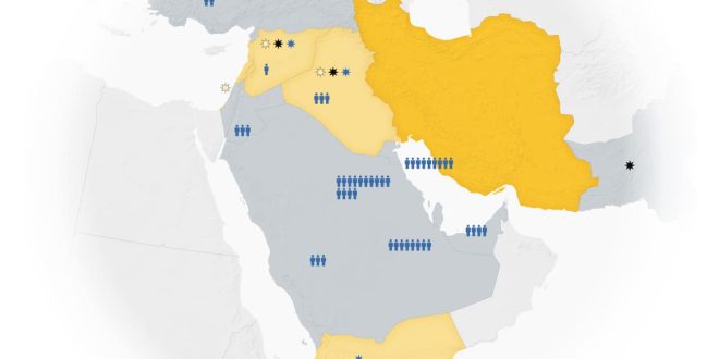 مع تصاعد التوترات في جميع أنحاء المنطقة، إليكم خريطة توضح المناطق التي توجد فيها إيران أو حلفاؤها، وتمركز القوات الأمريكية وحيث أجرى الجانبان عمليات عسكرية منذ بداية الحرب بين إسرائيل و ح-ما-س.
