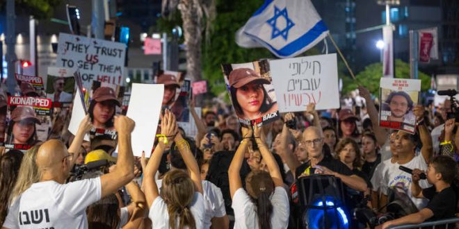 عائلات الرهائن تتجمع أمام المقر العسكري للحكومة الإسرائيلية للمطالبة بالإفراج عنهم