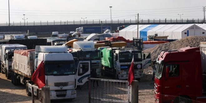وأضاف الهلال الأحمر الفلسطيني أن طواقمه “تستقبل الآن شاحنات مساعدات عبر معبر رفح من شركائنا في الهلال الأحمر المصري”.