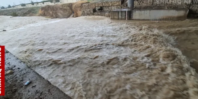 موجة فيضان من نهر الزاب تقطع طريقاً ريفياً شرقي الموصل