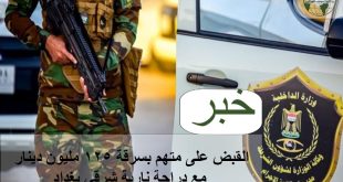 أعلنت مديرية مكافحة إجرام، اليوم الثلاثاء، عن إلقاء القبض على متهم بسرقة ١٢٥ مليون دينار مع دراجة نارية من داخل دار شرقي بغداد . وذكر بيان للمديرية، تلقته وكالة الموقف العراقي ان “مفارز مديرية مكافحة إجرام بغداد/ مكتب الشعب القت القبض على متهم لقيامه بسرقة مبلغ مالي قدره (١٢٥) مليون …