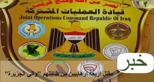 اعلنت قيادة العمليات المشتركة، مقتل اربعة ارهابيين من ضمنهم ما يسمى “والي الجزيرة” في محافظة الانبار. القيادة قالت في بيان مقتضب، تلقته وكالة الموقف العراقي إن “قوة من عمليات الجزيرة وبالاشتراك مع الحشد العشائري تمكنت من قتل 4 ارهابيين خلال عملية أمنية، مشيرة الى ان “من بين القتلى ما يسمى …