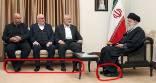 تداول نشطاء على مواقع التواصل الاجتماعي صورا من لقاء رئيس المكتب السياسي لحركة ح-م-اس والوفد المرافق له خلال لقاء المرشد الأعلى بإيران، علي خامنئي. وأبرز نشطاء عدم ارتداء إسماعيل هنية والوفد المرافق لأحذية في حين يرتدي خامنئي حذاءه خلال اللقاء، وهو ما علق عليه المتحدث باسم رئيس الوزراء الإسرائيلي للعالم العربي، …