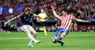 — تعادل نادي أتلتيكو مدريد الإسباني مع نظيره أرسنال الإنجليزي بهدف لمثله، على أرض ملعب "ميتروبوليتانو"، الأربعاء، في ذهاب نصف نهائي دوري أبطال أوروبا (تشامبيونزليغ). وأحرز خوليان ألفاريز هدف نادي أتلتيكو مدريد عند الدقيقة 56 من زمن المباراة، من علامة الجزاء. وبالطريقة ذاتها وفي الدقيقة 44، سجل فيكتور جيوكيريس هدف …