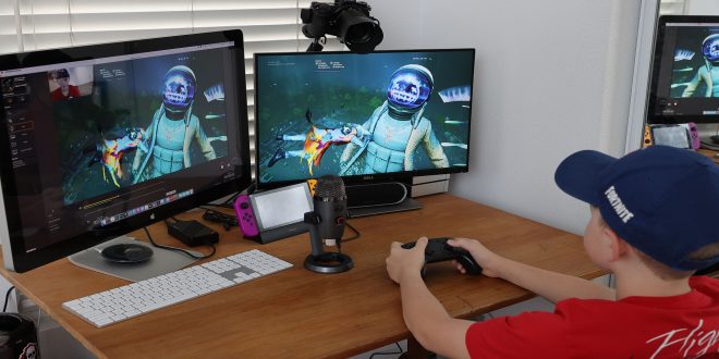 SOUTH PASADENA, CA - APRIL 23: 11-year-old Ansel, the photographer’s son, plays Fortnite featuring Travis Scott Presents: Astronomical on April 23, 2020 in South Pasadena, California. Travis Scott + Cactus Jack have partnered with Fortnite to produce Astronomical, a one of a kind in-game experiential performance and the world premiere of a new song. (Photo by Neilson Barnard/Getty Images)